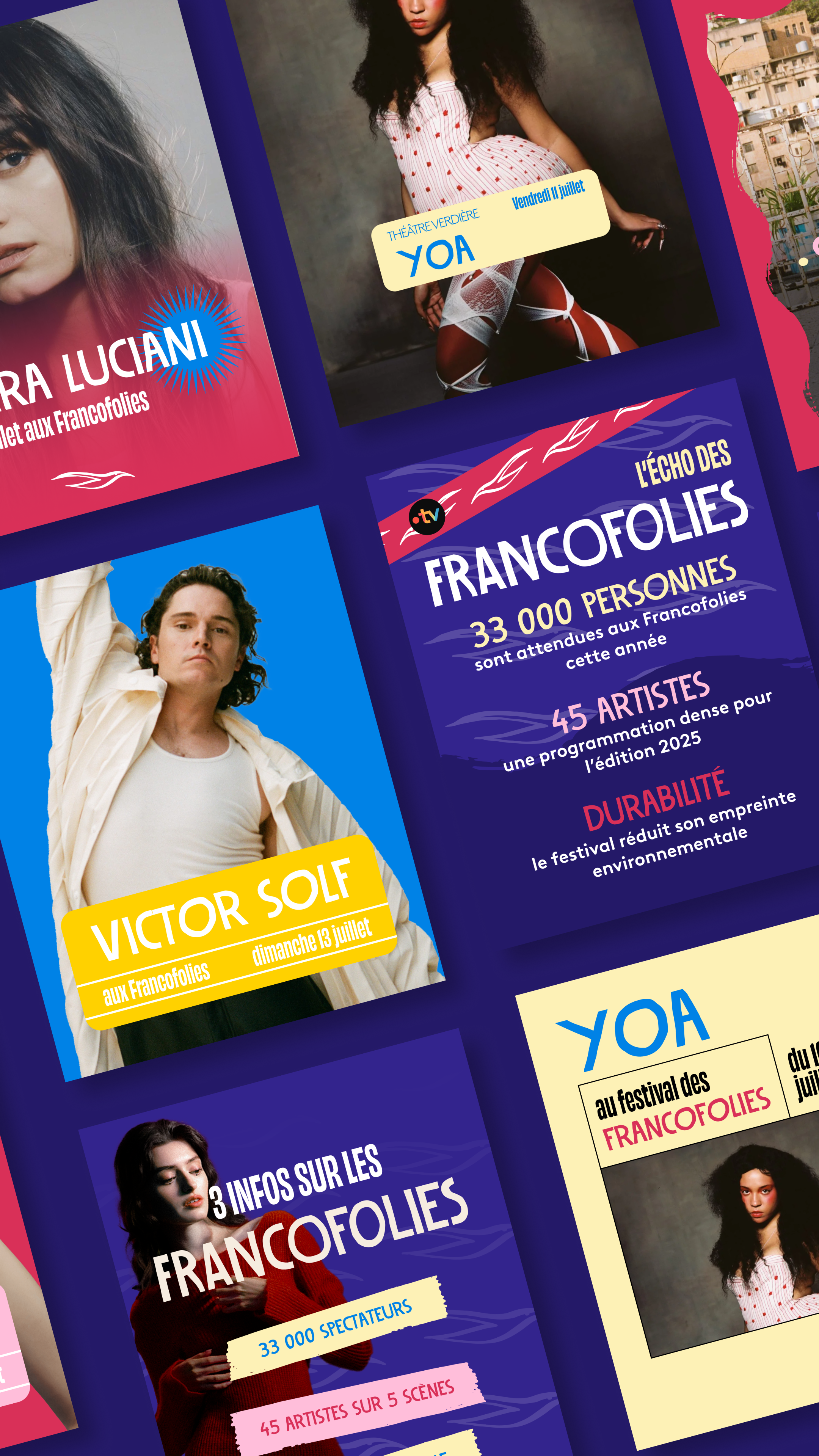 Conception de contenu social media à l’occasion des Francofolies 2025, en mettant en avant les artistes et l’ambiance unique du festival.
